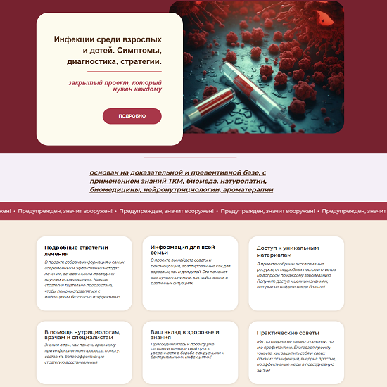 В проекте собрана информация о самых современных и эффективных методах лечения, основанных на последних научных исследованиях. Каждая стратегия была тщательно проработана, чтобы помочь вам справляться с инфекциями безопасно и эффективно.