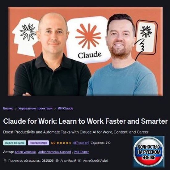 [Антон Воронюк, Фил Эбинер] Claude для работы: Научитесь работать быстрее и эффективнее (2026) [Udemy]