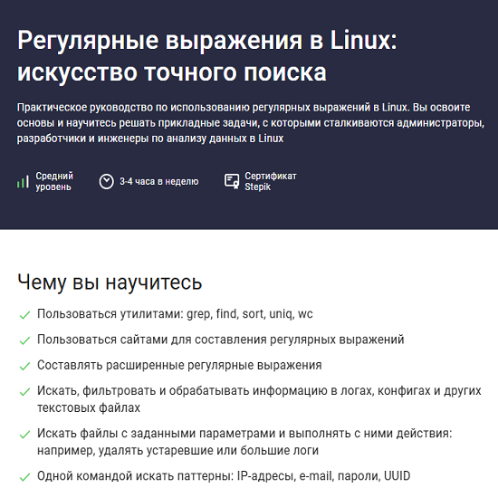 Курс — практическое руководство по использованию регулярных выражений в Linux. Вы освоите основы и научитесь решать прикладные задачи, с которыми сталкиваются администраторы, разработчики и инженеры по анализу данных в Linux.