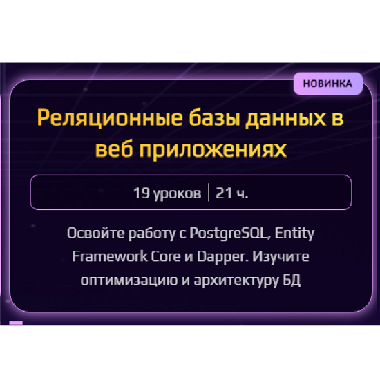 Освойте PostgreSQL, Entity Framework Core и Dapper для создания эффективных и масштабируемых решений с правильной архитектурой доступа к данным и производительными запросами.