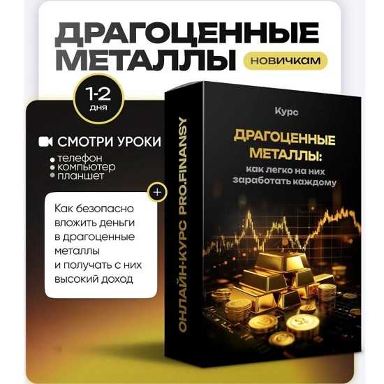 Вы узнаете, как безопасно вложить деньги в драгоценные металлы и получать с них высокий доход. Вы изучите 4 доступных и простых способа зарабатывать на драгоценных металлах и выберете подходящий для себя.