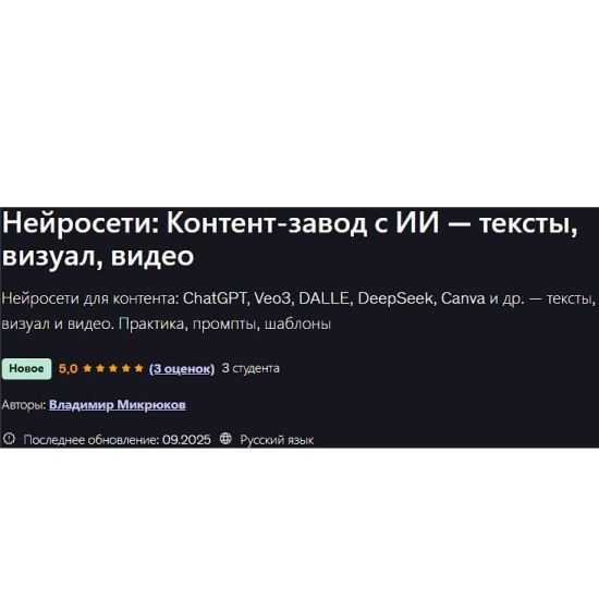 Нейросети для контента: ChatGPT, Veo3, DALLE, DeepSeek, Canva и др. — тексты, визуал и видео. Практика, промпты, шаблоны