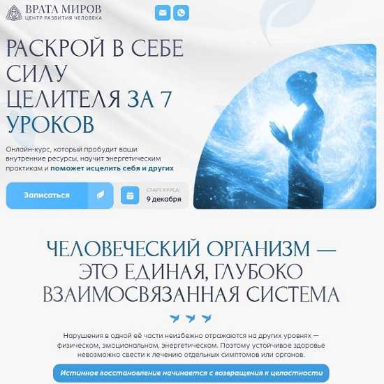 - Курс «Целительство» подойдёт тем, кто чувствует внутренний запрос на восстановление, осознание и расширение своего потенциала. Независимо от того, на каком этапе пути вы находитесь — вы найдёте в этом обучении то, что действительно откликается.
